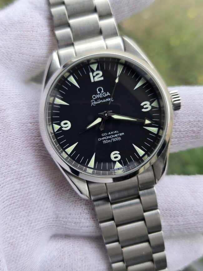 Omega Railmaster 41mm Stainless Steel Case on Stainless Steel Bracelet, Black Dial, Reference 2502.50, Circa 2007, Excellent Condition, Keeping perfect Time, With Box & Certificate of Authenticity