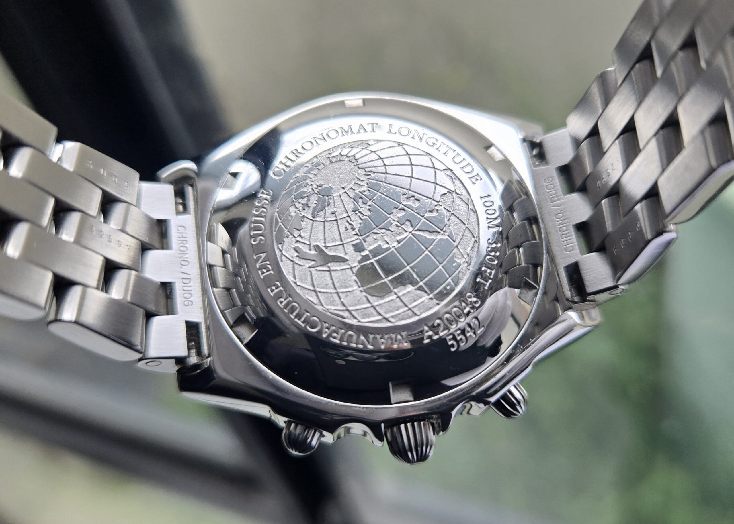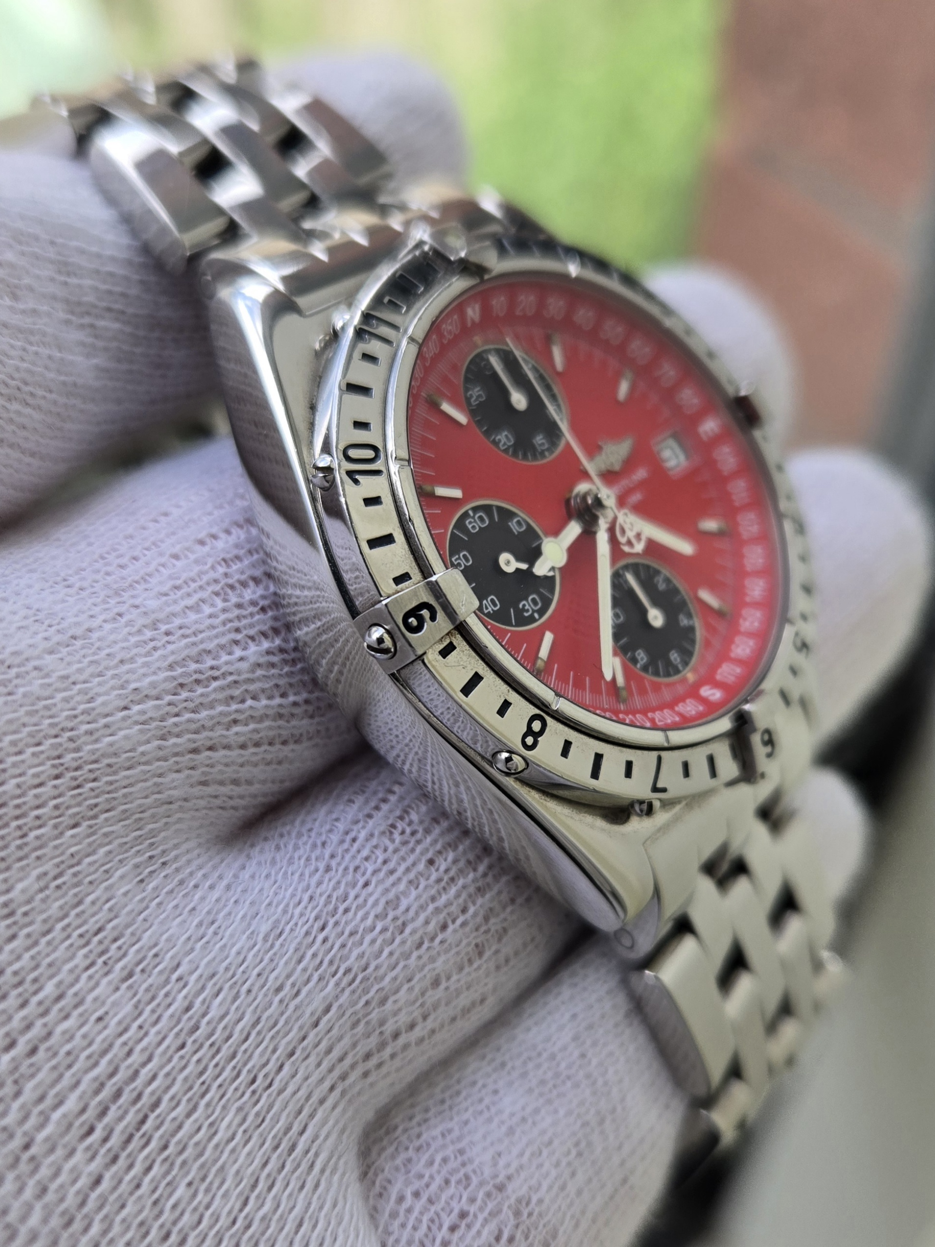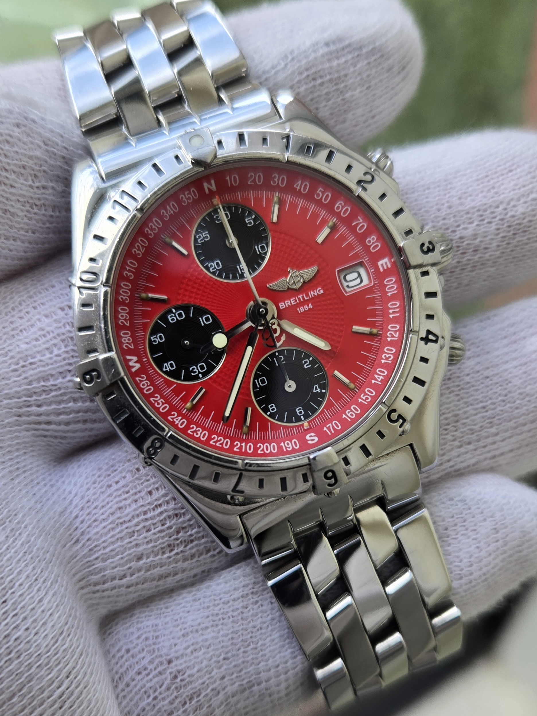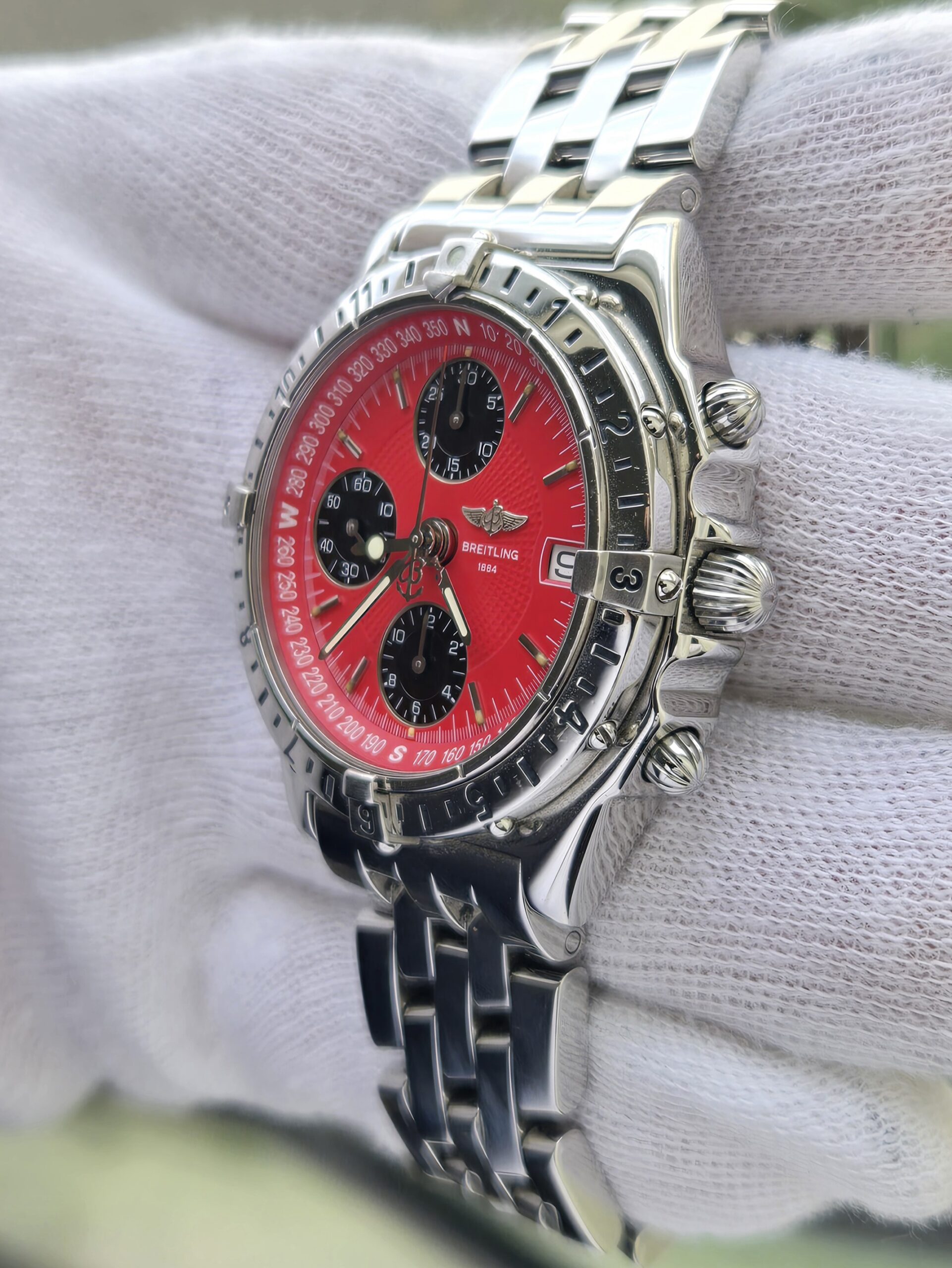 Breiting Chronomat Longitude GMT, Red Dial, Reference A20048, 39mm Stainless Steel, Excellent Condition, Recently Serviced, Keeping Perfect Time, Comes with Certificate of Authenticity