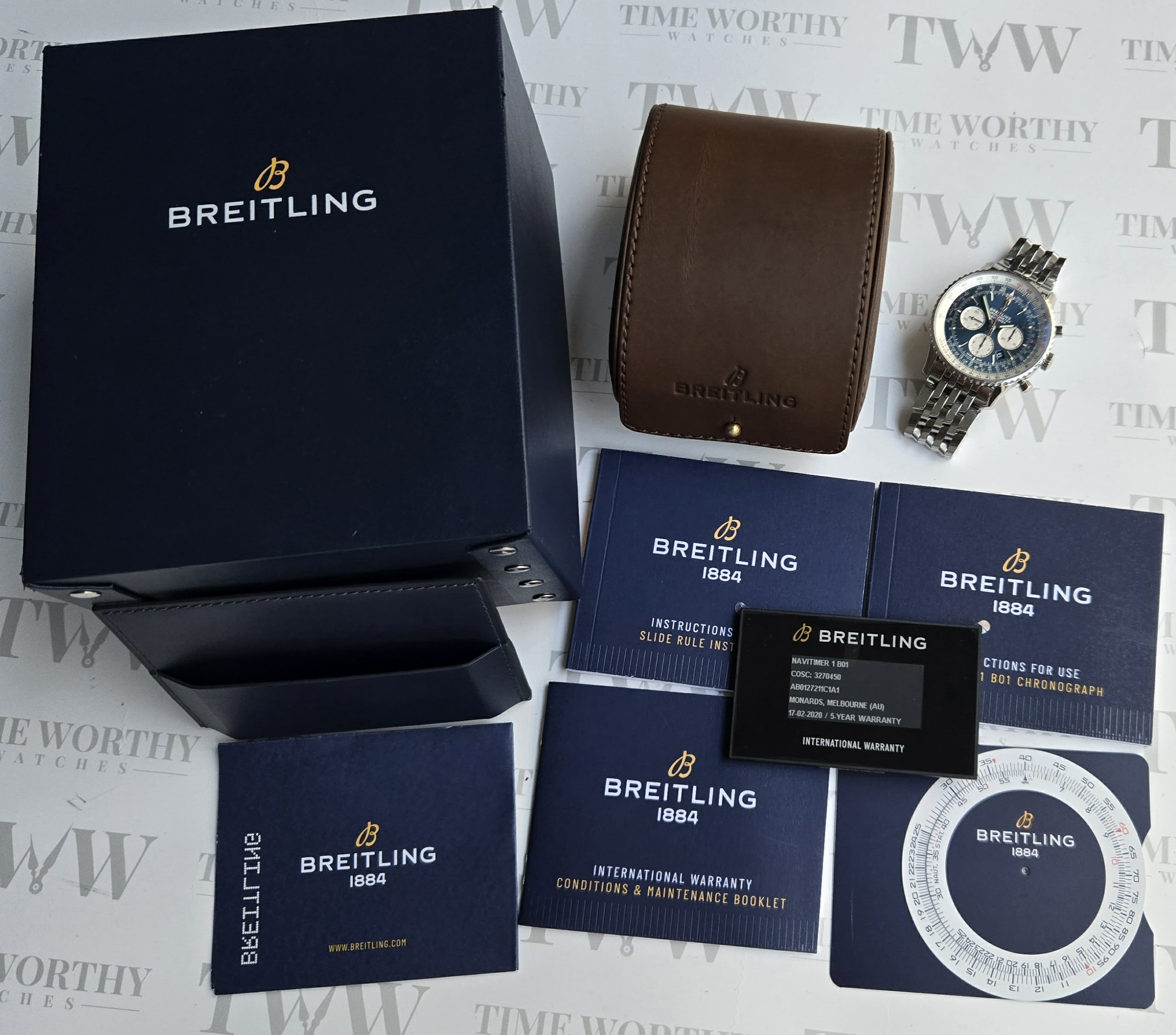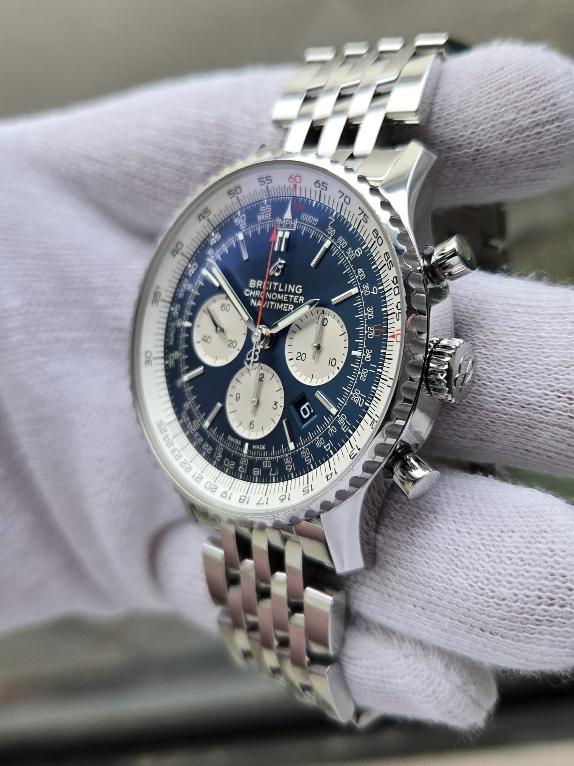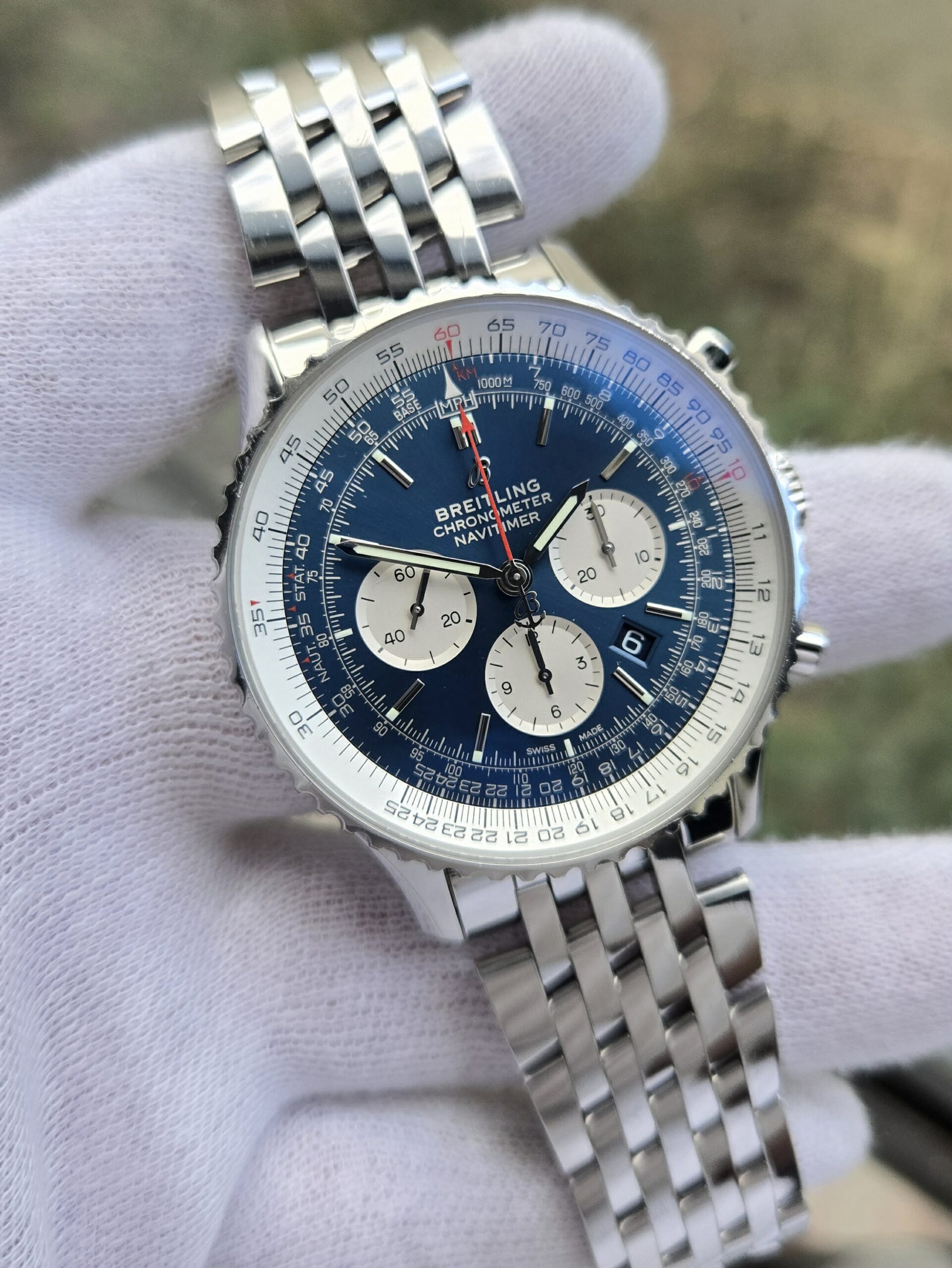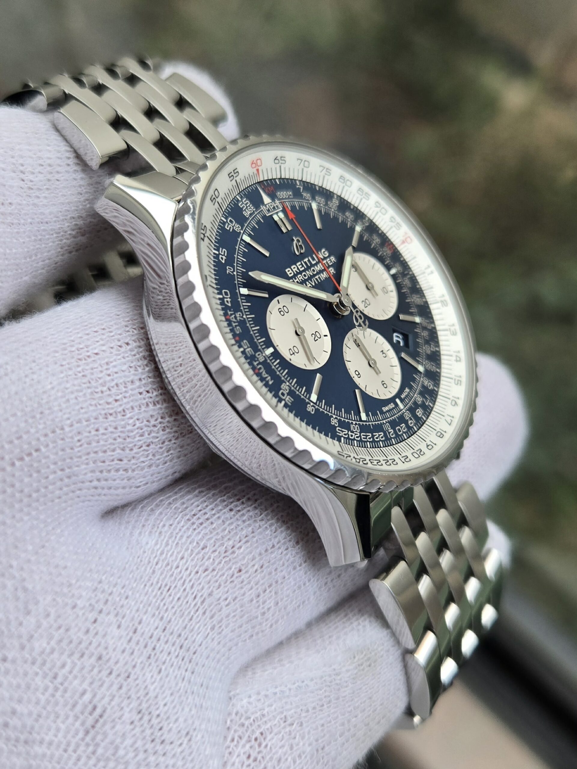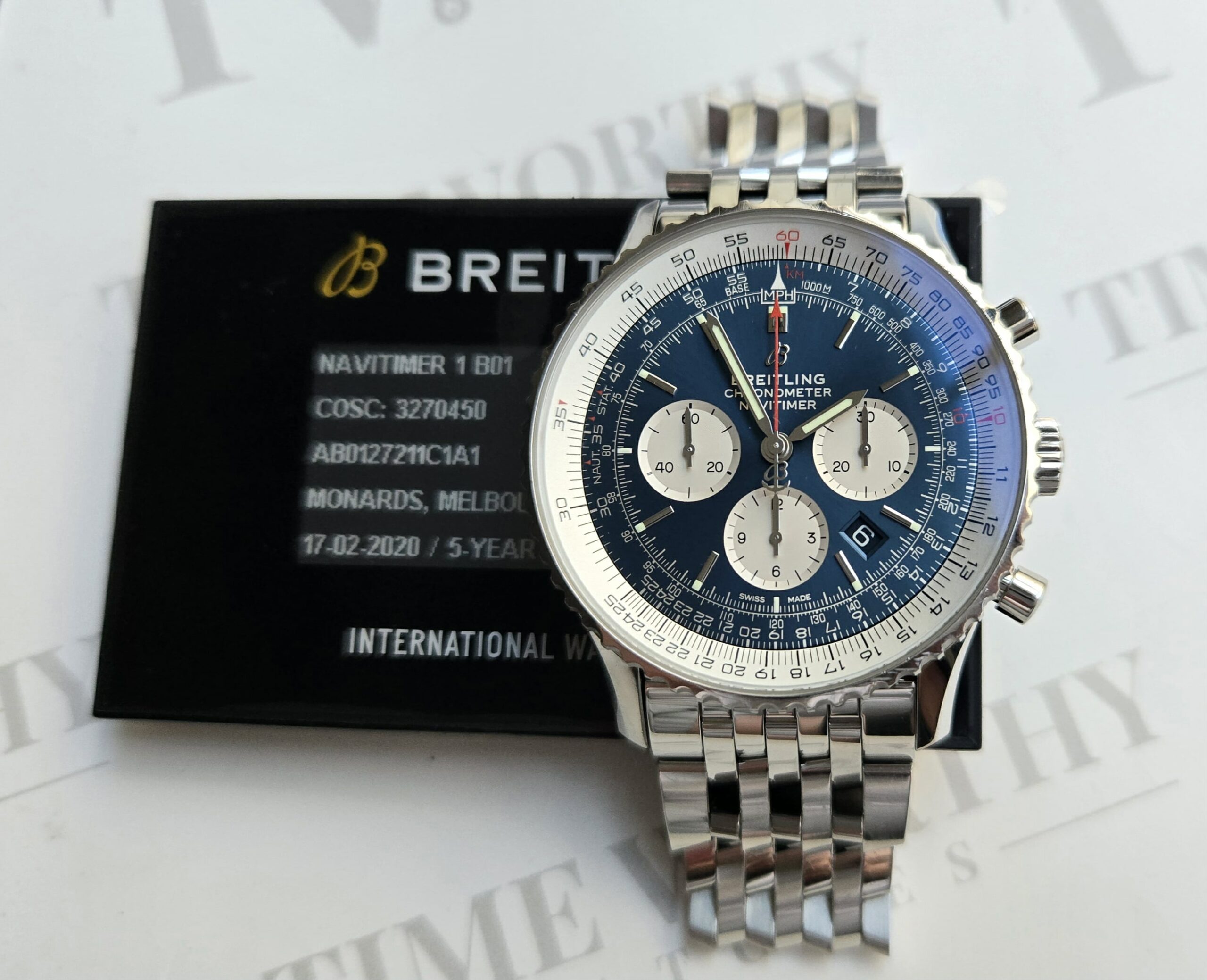 Breitling Navitimer Chronograph, Blue Dial, 46mm Stainless Steel Case on Breitling Stainless Steel Bracelet, Reference AB0127211C1A1 , Year 2020, Excellent Condition, Box & Papers.