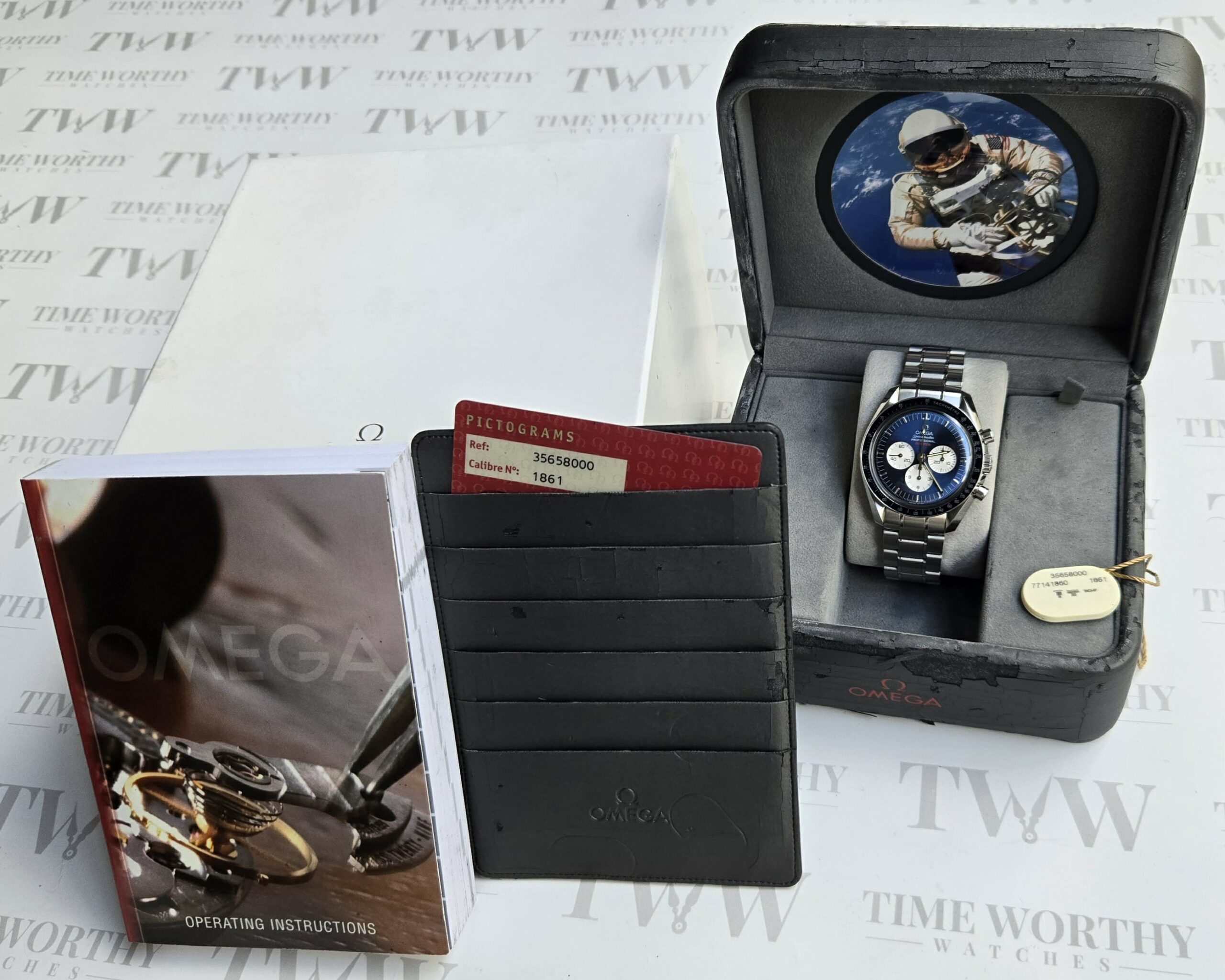 Omega Speedmaster Professional “Gemini IV”, Blue Dial, 42mm Stainless Steel Case on Omega Stainless Steel Bracelet, Reference 3565.80, Year 2006, Excellent Condition, with Box, Booklet & Pictogram Card.